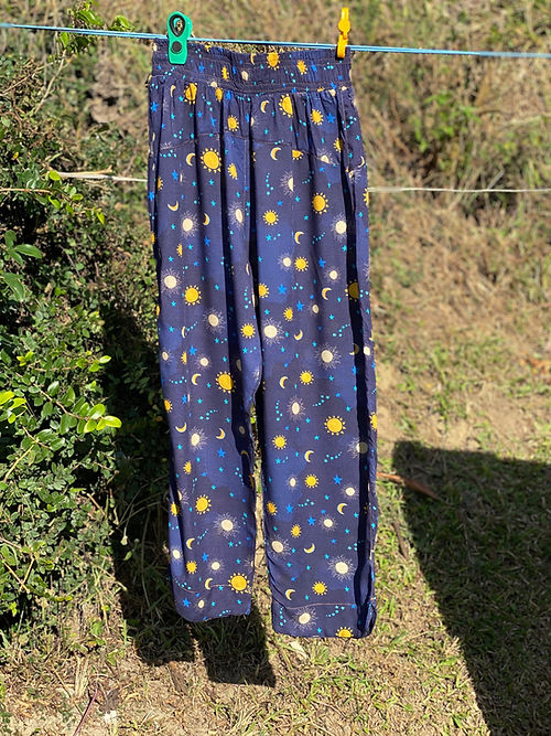 Calça de elástico em viscose, reta, “ sequinha”, sem bolso