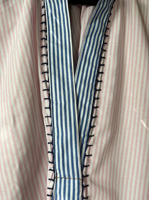 modelo clássica listrinha rosa gola e punho listrinha azul