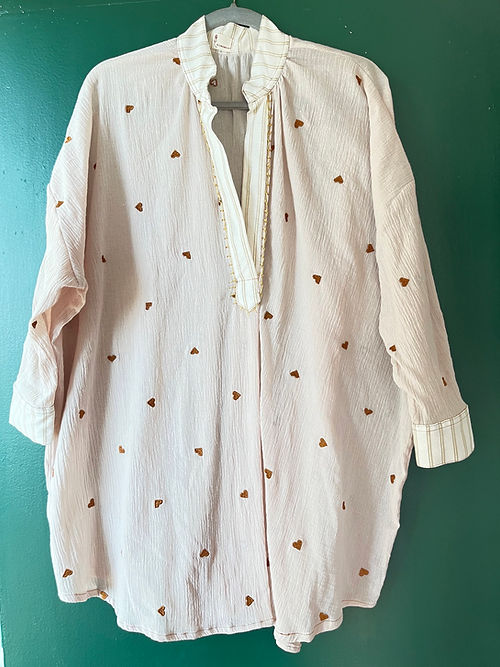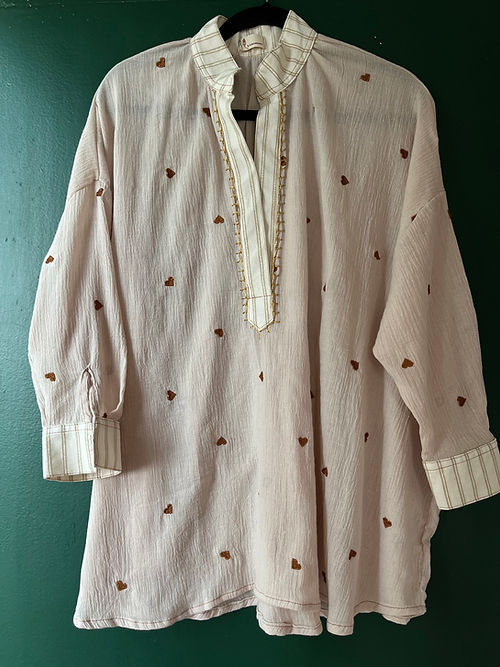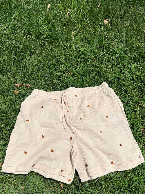 Conjunto short + Camisão clássico gaze de algodão bege coração