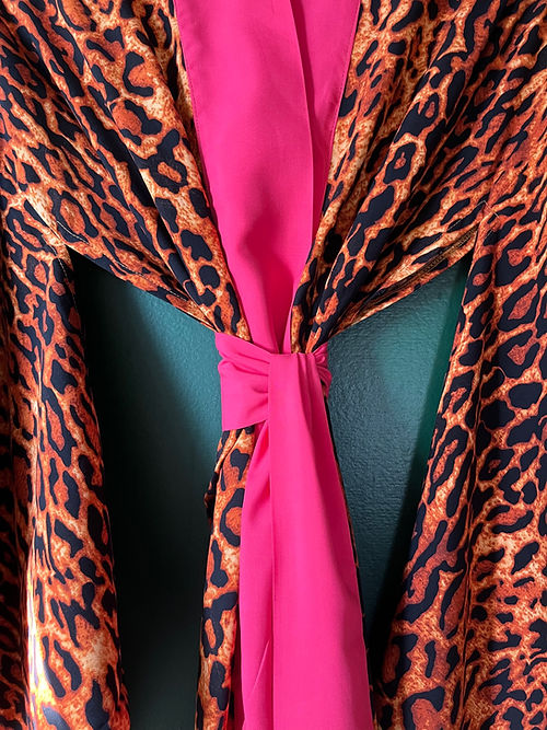 Kimono longo animal print com pink