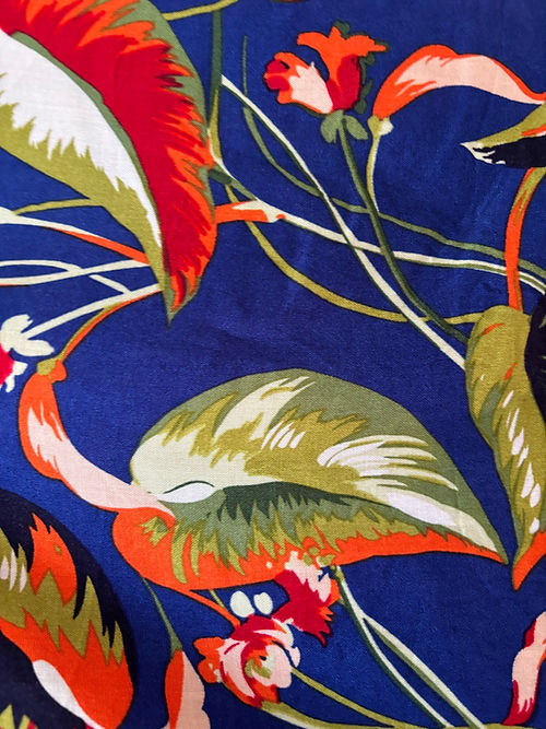 kimono longo em viscose estampa folhas azul