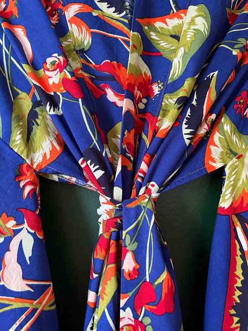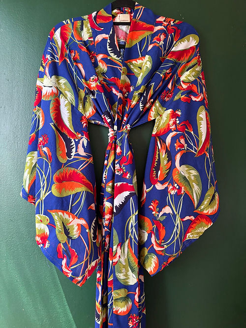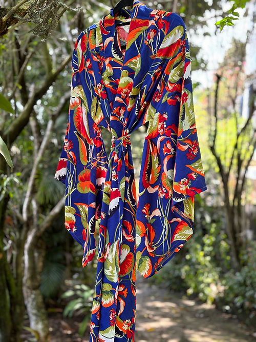 Kimono longo azul folhas