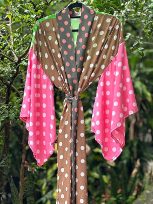 Kimono longo mix poá rosa e bege