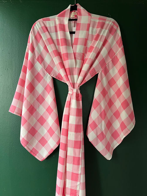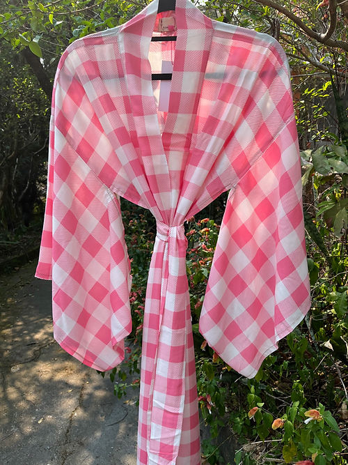 Kimono longo xadrez rosa